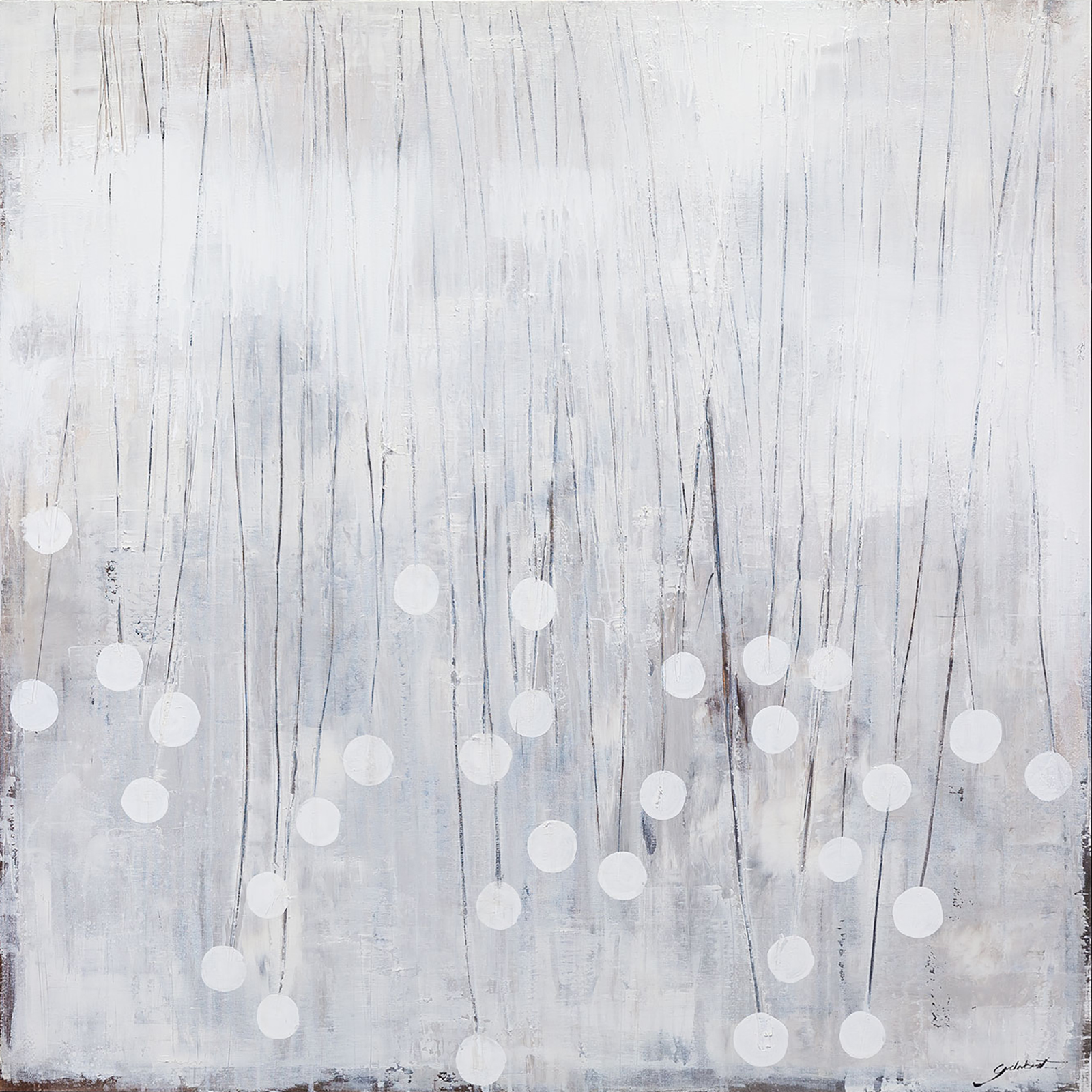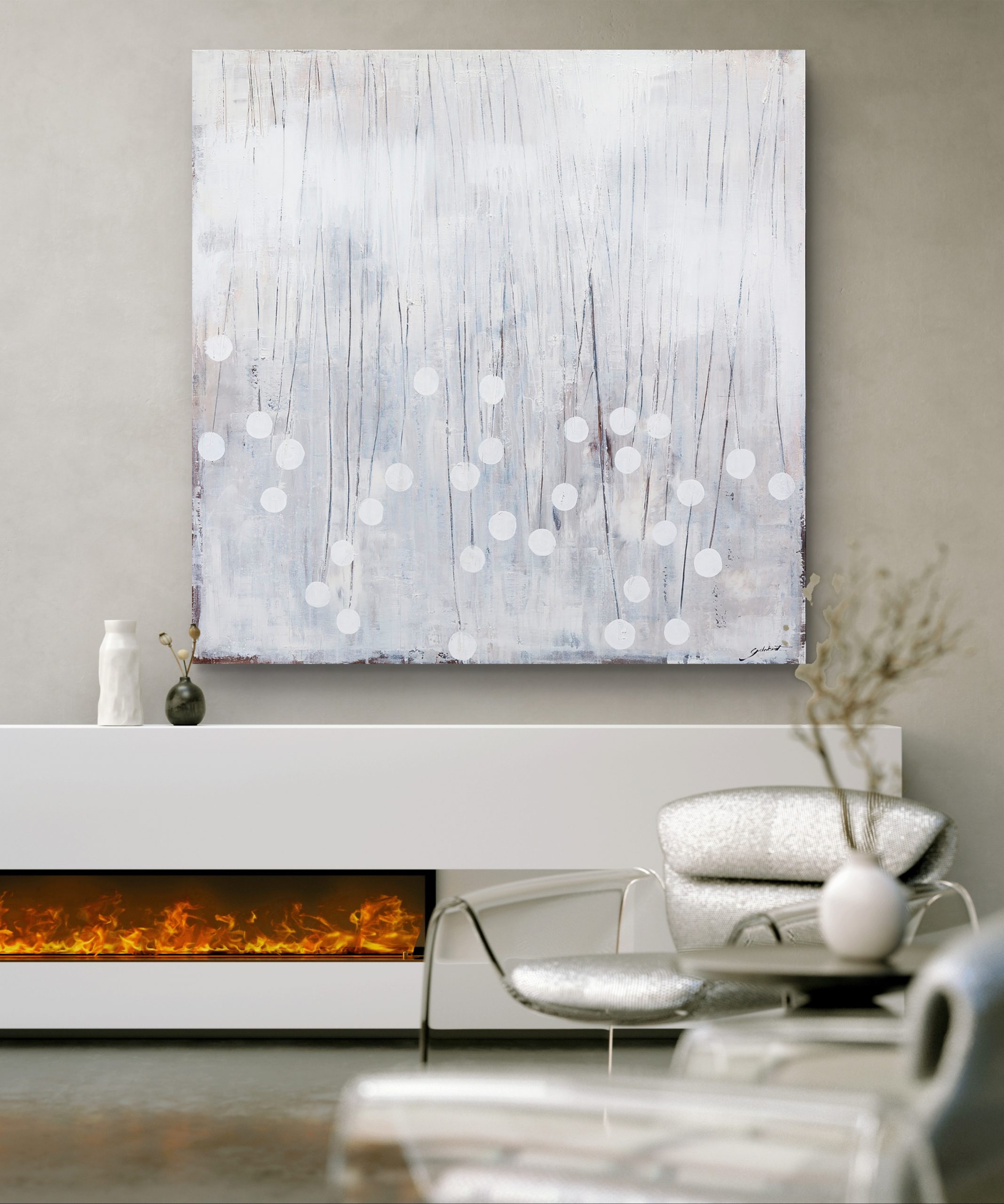 Obra que capture la delicadeza y la belleza efímera de los copos de nieve. El fondo podría ser de un suave azul claro o gris pálido, evocando una atmósfera invernal tranquila. Los copos de nieve, con sus formas hexagonales y complejas, se dispersan por el lienzo, algunos grandes y detallados, otros pequeños y etéreos, flotando suavemente en el aire.
