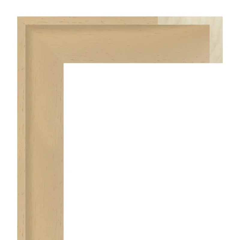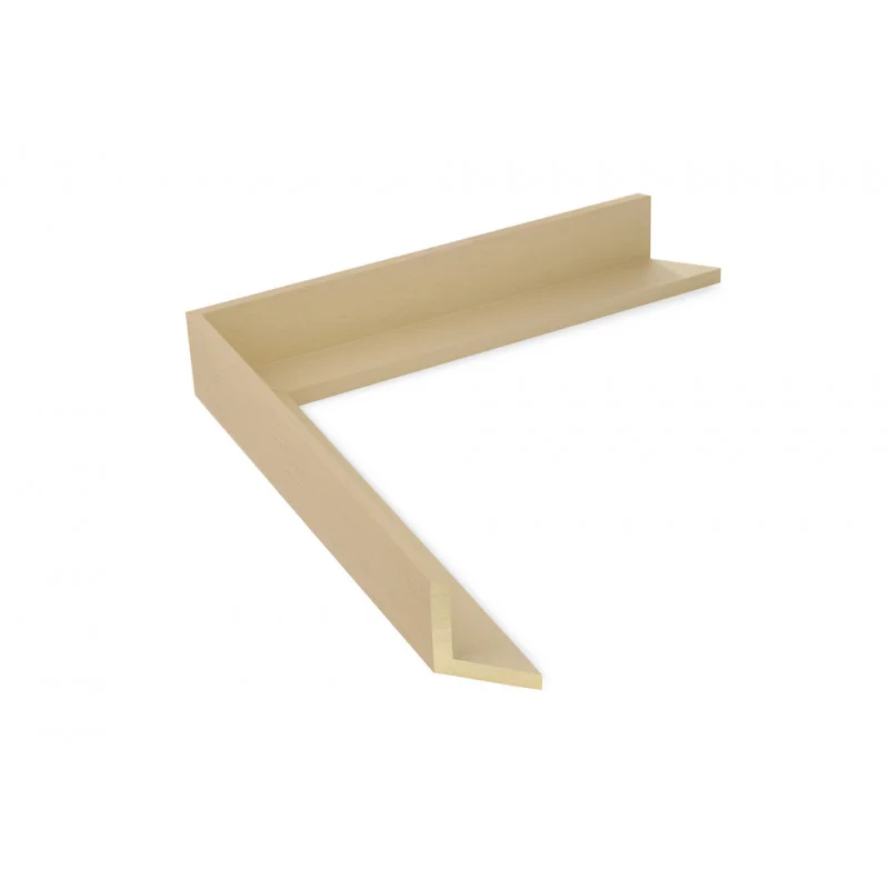 Moldura lisa fabricada en madera de ayous. Decorado en color crema natural con poro abierto. Indicada para uso como caja americana, cajón para lienzos o marco en «L».