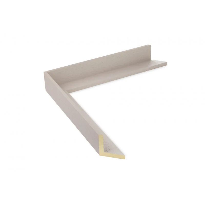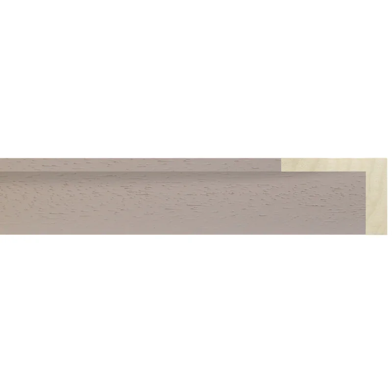 Moldura lisa fabricada en madera de ayous. Decorado en gris claro con poro abierto. Indicada para uso como caja americana, cajón para lienzos o marco en «L».Gris