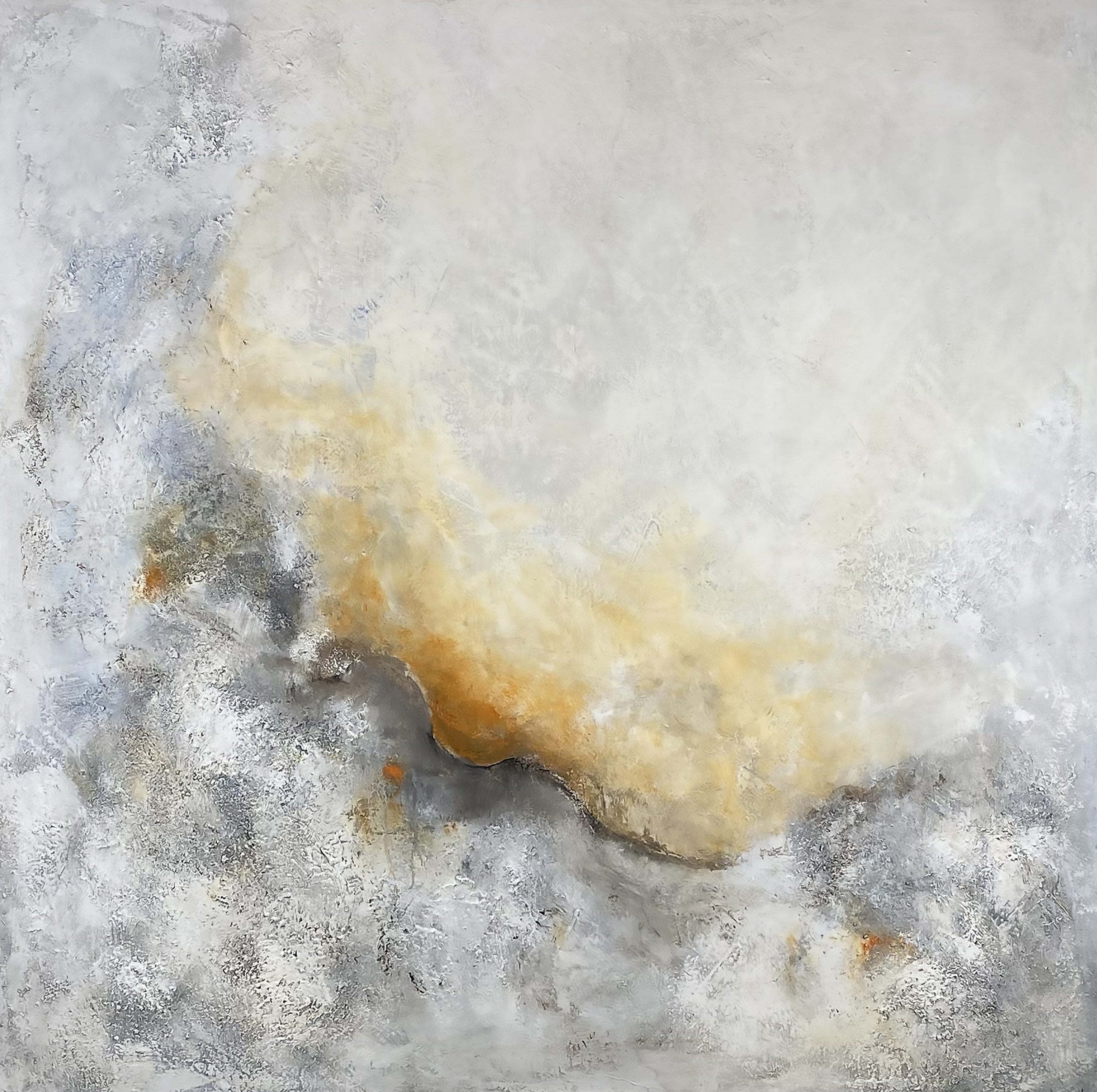 La forma en que los colores se mezclan y fluyen sugiere el movimiento sutil del agua, las corrientes suaves o la transparencia velada del mar poco profundo. La ausencia de líneas definidas y la naturaleza abstracta permiten al espectador conectar con la obra a través de sus propias experiencias y recuerdos del océano.