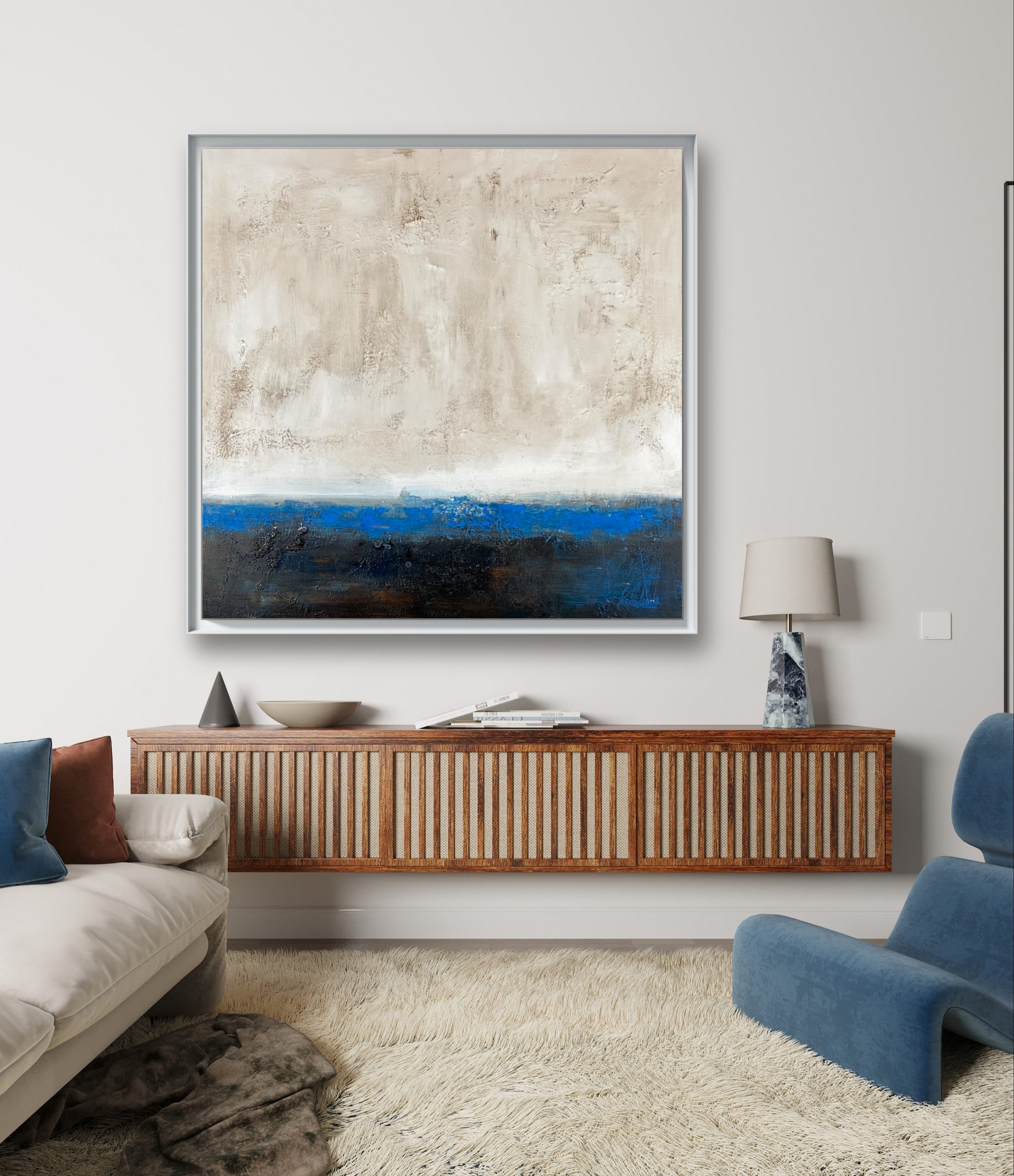 Por favor, tengan en cuenta que, debido a la naturaleza artesanal de cada obra, los tonos y las texturas pueden variar ligeramente con respecto a la imagen. Cada cuadro es único y se entrega con un certificado de autenticidad, consolidando «Murmullos de Azul» como una expresión completa y cautivadora del misterio cósmico en tonos tierra.